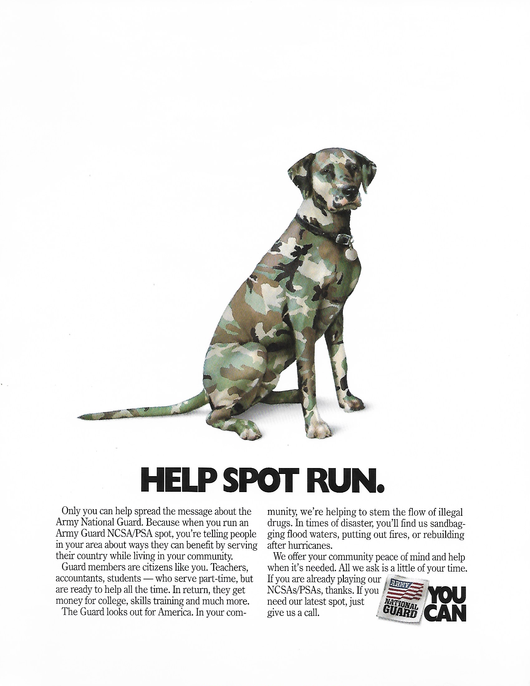 - Conceptualized, produced and distributed “YOU CAN” TV PSA campaign to emphasize the Army Guard's service to country and community.